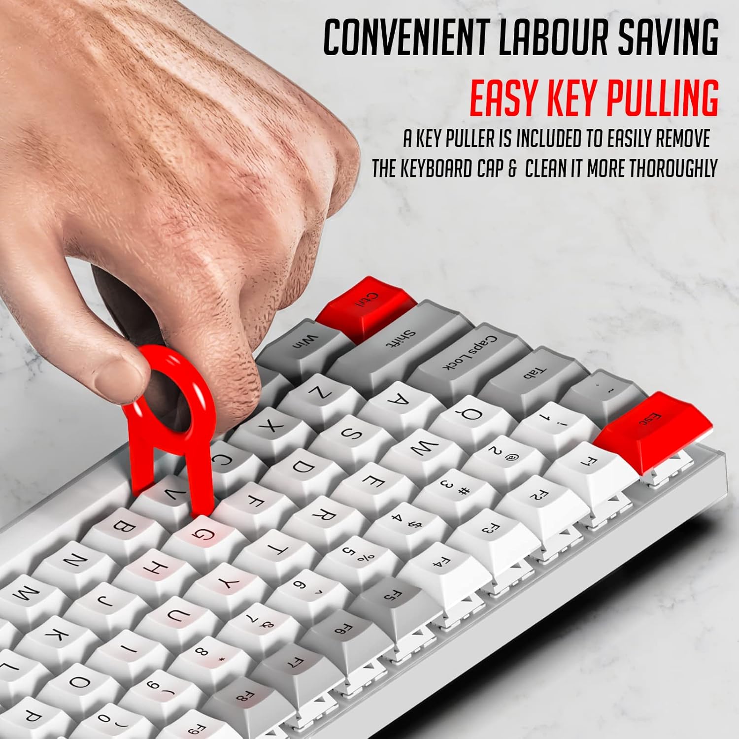• Keycap Puller: Easily removes keycaps for thorough cleaning underneath, ensuring no debris is left behind.